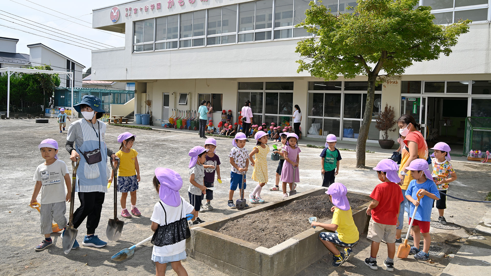 本園では、苗植えから収穫までを実際に体験する農園活動や小動物の飼育など、身近な自然と関わる環境づくりにも力を注いでいます。